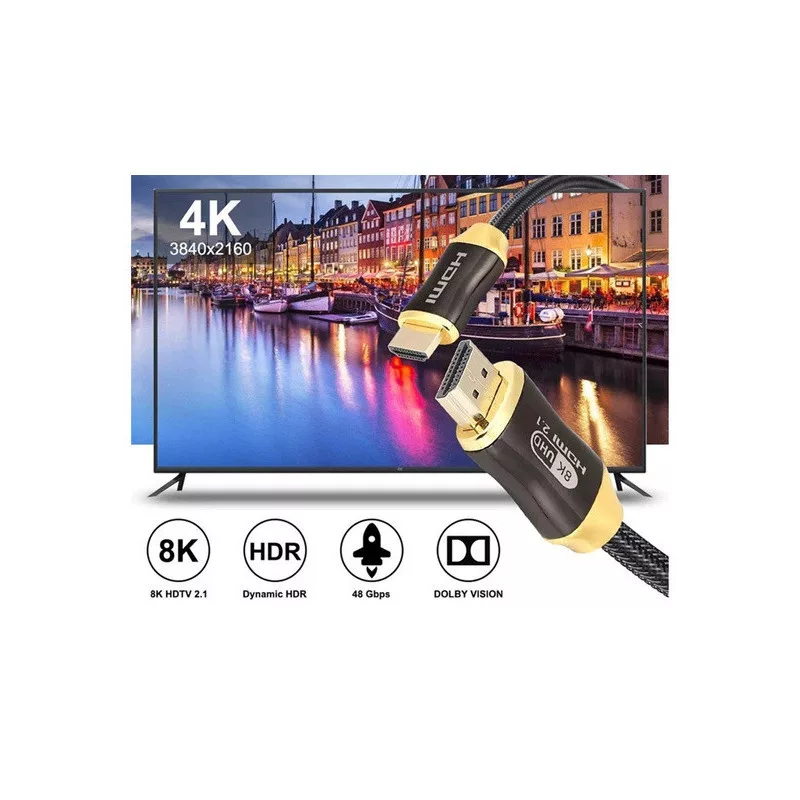 Träumst du von einem perfekten visuellen und Klangerlebnis? Hier ist das HDMI 2.1 Kabel, das Video- und Audioübertragung auf ein völlig neues Niveau hebt. Genieße hervorragenden Kontrast, brillante Farben und eine reibungslose Audio-Video-Übertragung ohne Kompromisse! Das 1,5 m lange Kabel ist flexibel genug, um sich deinen Audio-/Video-Setups anzupassen. Keine unnötigen Knoten oder Einschränkungen! Mit den vergoldeten Anschlüssen ist das HDMI 2.1 Kabel die ideale Wahl für deinen Fernseher, deine Spielkonsole, deine Soundbar oder andere Geräte. Einfach anschließen und das moderne Audio-/Video-Erlebnis genießen.