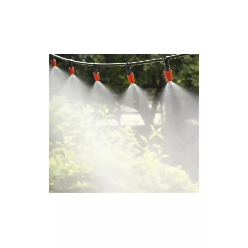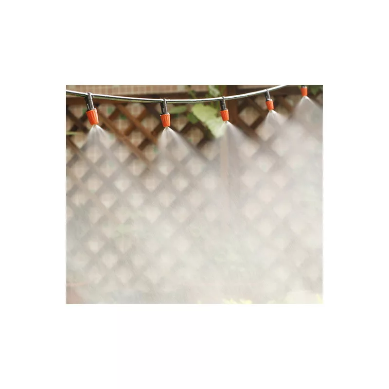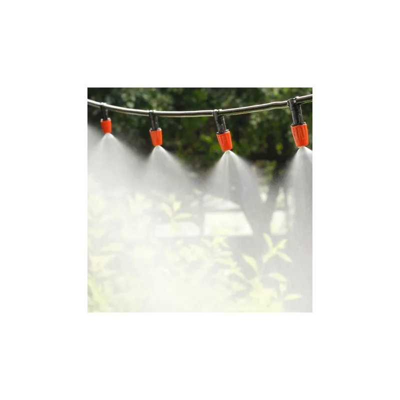 ☀️ Der Wassernebel sorgt an den heißesten Tagen für eine angenehme Abkühlung. Installiert an einem geeigneten Ort, wie unter einer Terrasse oder einem Sonnenschirm, kann er die Umgebungstemperatur effektiv um bis zu 10-12 Grad senken. Der Wassernebel entfernt außerdem Schmutzpartikel aus der Luft und hält fliegende Insekten fern. Er eignet sich auch hervorragend zur Bewässerung, sodass er perfekt für die Pflanzenbewässerung ist. Dank des einstellbaren Sprühwinkels können wir unsere Pflanzen, zum Beispiel im Garten-Tunnel, effizient bewässern. Einfach den Wasserschlauch anschließen, und das Bewässerungssystem startet automatisch und beginnt mit dem Sprühen. Es verbraucht keinen Strom. ☀️