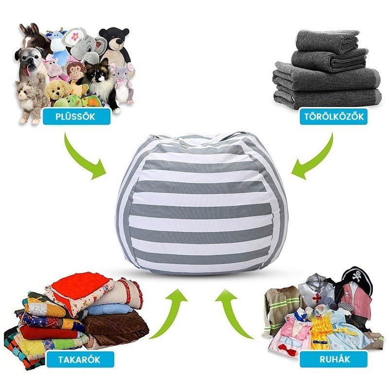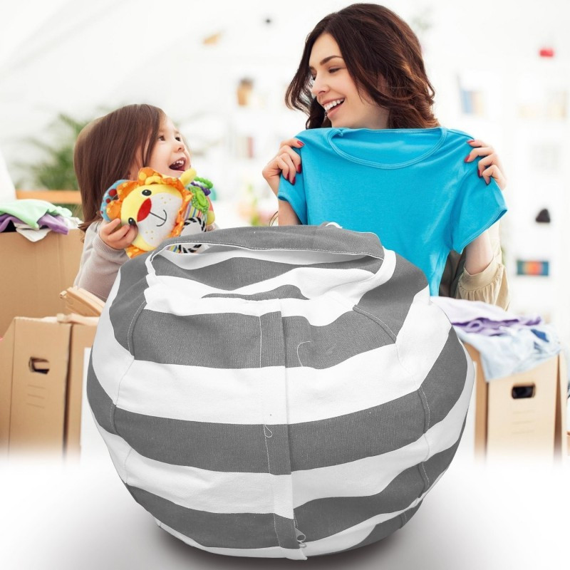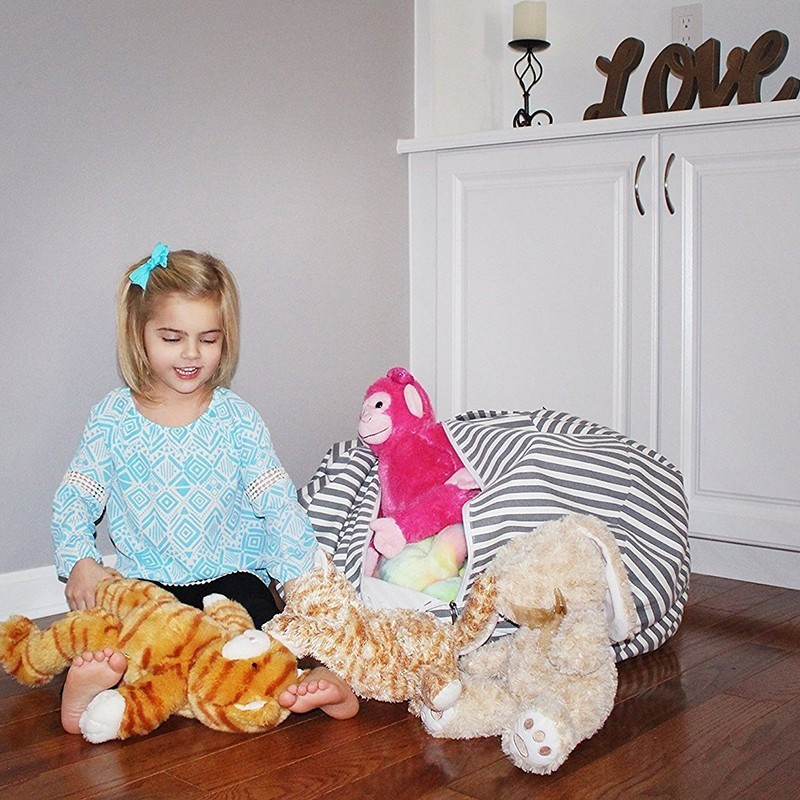 Verbinde das Angenehme mit dem Nützlichen! Verstau die Kuscheltiere in diesem Aufbewahrungs-Sitzsack, in dem du die Spielsachen verstecken kannst und der gleichzeitig als Kinderstuhl genutzt werden kann.