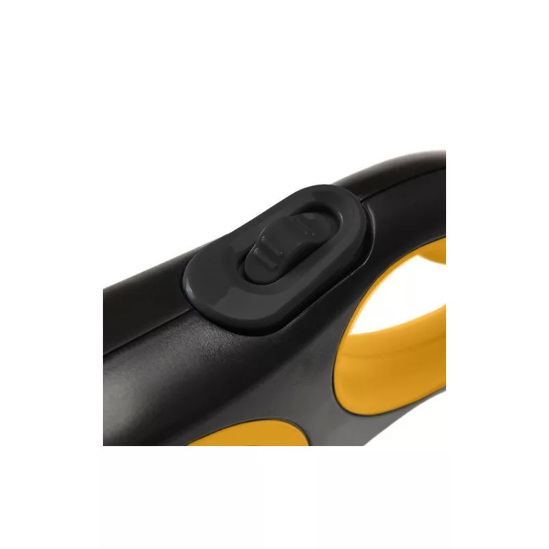 Die Leine ist mit einem einfachen Bremssystem ausgestattet, das das Band im Handumdrehen stoppt. Zieh einfach den Knopf zu dir heran und drücke ihn – schon ist die Sperre aktiviert. So kannst du deinen Hund jederzeit in Sicherheit wissen, selbst in einem Augenblick.