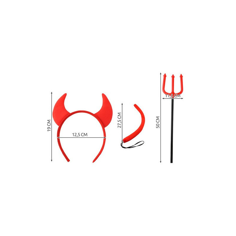 Teuflisches Kostüm-Set – 4-teilig: Gabel, Hörner, Fliege und Schwanz