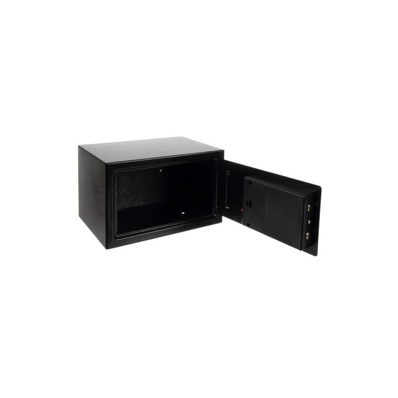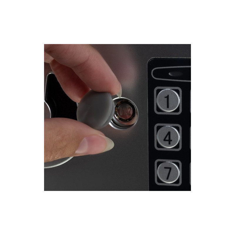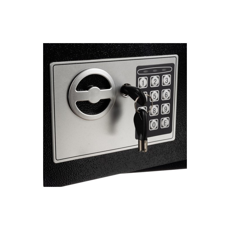 Die Kombination aus elektronischer Codierung und traditioneller Schlüsselnotöffnung garantiert, dass Unbefugte keinen Zugriff auf deine Wertsachen haben. Das Schloss kann mehrfach mit einem 3- bis 8-stelligen Code neu programmiert werden. Gibt jemand dreimal einen falschen Code ein, sperrt sich der Tresor für 30 Sekunden und warnt mit Licht- und Tonsignal. Bei schwachen Batterien zeigt der Tresor dies mit einer LED-Anzeige an.