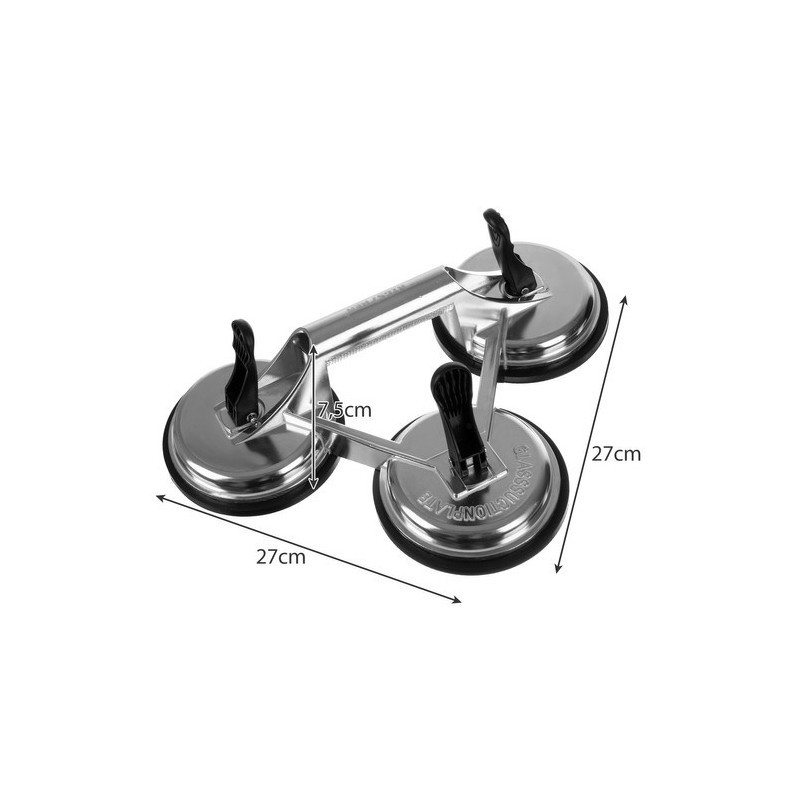 Aluminium Vakuumhebergriff - Mit 3 Gummisaugnäpfen, 120 mm, 150 kg Tragkraft