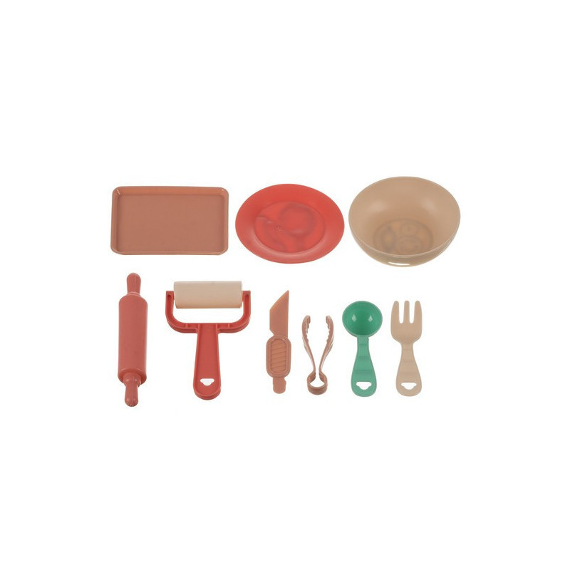 Im Set findest du alles, was du brauchst: ein sicheres Messer, Gabel, Löffel, Schüssel, Teller und Tablett. Außerdem gibt es eine Zange und 2 Walzen dazu. Mit diesem Zubehör können die Kinder alles aus Knete erschaffen – ob Essen, Tiere oder sogar Menschen. Nur die Fantasie setzt Grenzen!