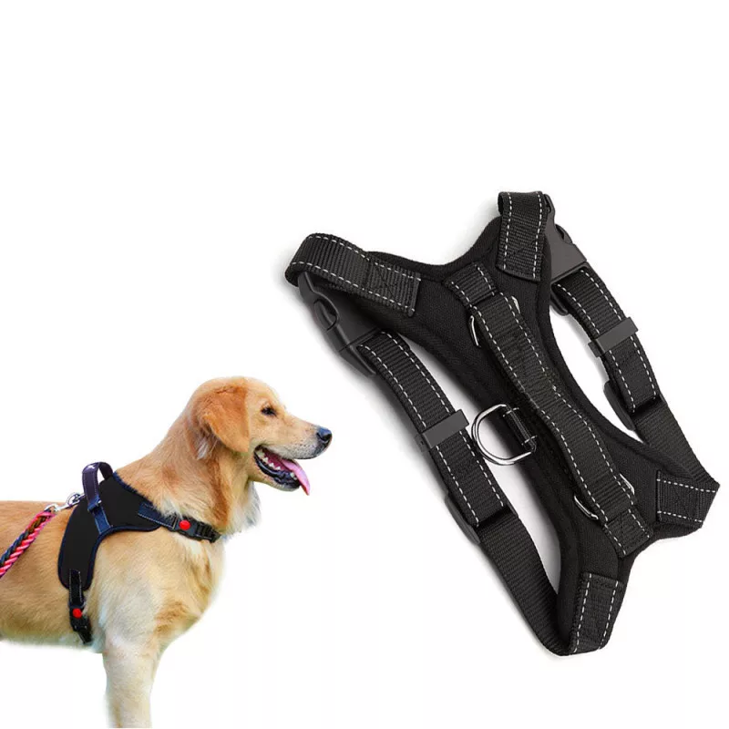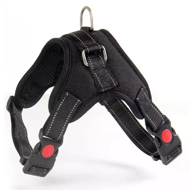 Das Produkt ist in 4 Größen erhältlich: S, M, L, XL, sodass du sicher die passende Größe für deinen Hund findest. Das Geschirr ist größenverstellbar, sodass du es individuell an deinen Liebling anpassen kannst, ohne dass es zu eng wird. Mit dem Geschirr übst du keinen Druck aus, sodass du deinen Hund besser halten kannst, ohne dass er verletzt wird. Das Gadget besteht aus atmungsaktivem Material und schont die Haut deines Vierbeiners. Der am Geschirr angebrachte Karabiner ist aus Metall gefertigt, um einen sicheren Halt zu gewährleisten.