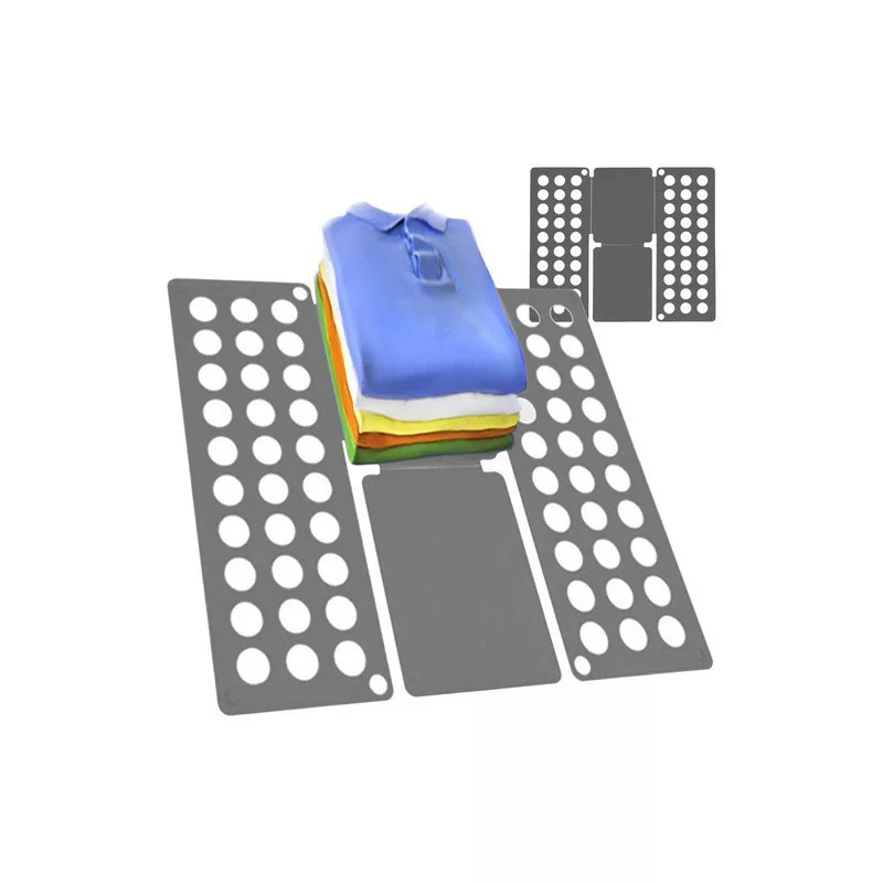 Dieses Tool zaubert perfekte Ordnung in deinen Kleiderschrank, denn du kannst damit deine Kleidung im Handumdrehen perfekt falten. Nur drei einfache Bewegungen, und dein T-Shirt wird zu einem gleichmäßigen Quadrat.