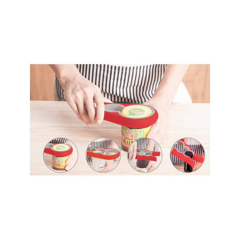 Der Öffner ist sehr einfach zu bedienen. Er verfügt über gummibeschichtete Greifer, die sich fest an den Deckel schmiegen. Sobald du den Öffner auf den Deckel gesetzt hast, einfach zudrücken und das Einmachglas oder die Flasche langsam aufdrehen. Der Öffner hat vier unterschiedlich große Öffnungen für Einmachgläser und Flaschen.